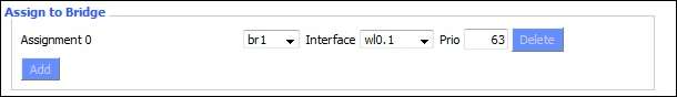 "پل کو تفویض کریں" کے تحت "شامل کریں" پر کلک کریں۔ آپ نے پہلا ڈراپ ڈاؤن سے تخلیق کیا نیا پل منتخب کریں ، اور اسے "wl0.1 ″ انٹرفیس کے ساتھ جوڑیں۔