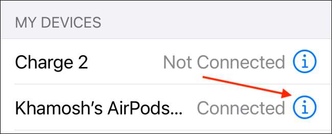 اب، اپنے AirPods پرو کے آگے "اختیارات" کے بٹن پر کلک کریں.