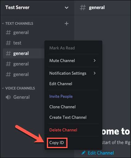 ڈیولپر موڈ فعال کے ساتھ، آپ دایاں کلک سرور کا نام، چینل کا نام، یا صارف کا نام اور "کاپی ID" کا اختیار منتخب کر کے صارفین، چینلز، اور سرورز کے لئے ID اقدار کاپی کر سکتے ہیں.