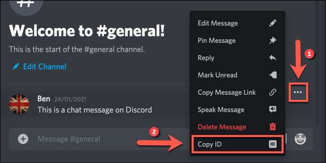ایک پیغام ID، ہور پر کوئی پوسٹ پیغام کی کاپی کرنے کے لئے، اس کے بعد تین نقطے مینو آئیکن پر کلک کریں. مینو میں سے، "کاپی ID" اختیار منتخب کریں.
