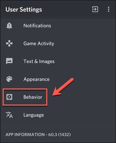 یہاں سے، آپ کے قابل "صارف کی ترتیبات" مینو میں آپ کے اکاؤنٹ اور اے پی پی کی ترتیبات کو دیکھنے کے لئے ہو جائے گا. یہ مینو کے ذریعے swipe، پھر "رویے" آپشن پر ٹیپ کریں.