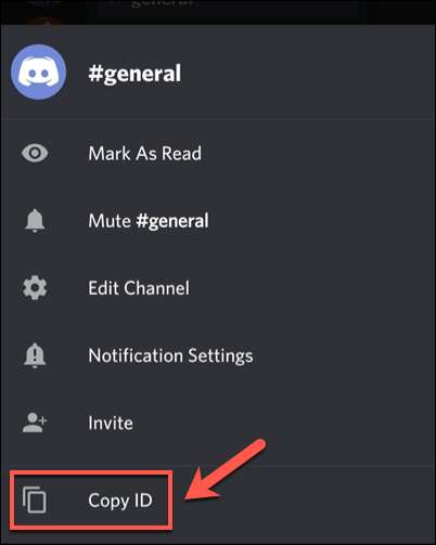 چینل کے ناموں اور پیغامات، نل اور نام یا پیغام ترتیبات پینل کے نیچے ظاہر ہوتا ہے جب تک پکڑ لیے. پینل سے، "کاپی ID" آپشن پر ٹیپ کریں.