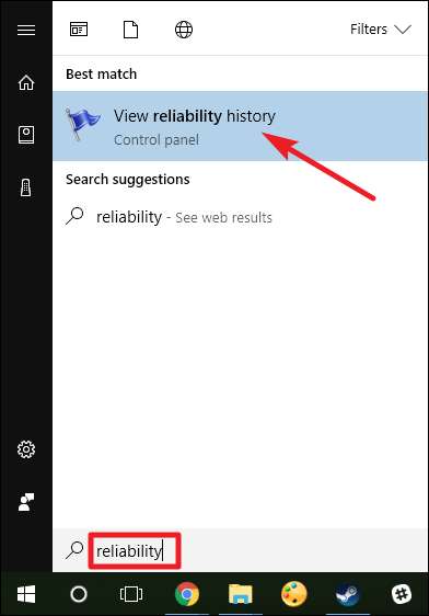 اسے کھولنے کے لئے ، صرف اسٹارٹ کو دبائیں ، "وشوسنییتا" ٹائپ کریں ، اور پھر "وشوسنییتا کی تاریخ دیکھیں" شارٹ کٹ پر کلک کریں۔