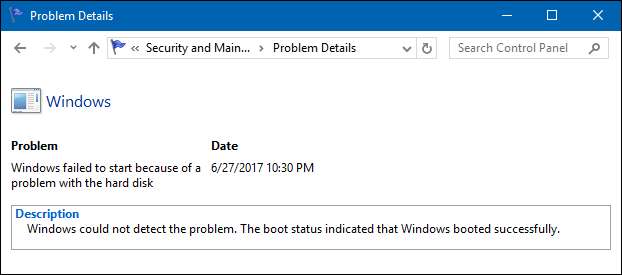 اگر آپ کو دلچسپ واقعہ درج نظر آتا ہے تو ، مزید معلومات کے ساتھ تفصیلات ونڈو کھولنے کے لئے اس پر ڈبل کلک کریں۔ یہاں ، ہم دیکھ سکتے ہیں کہ ونڈوز کو ہارڈ ڈسک سے پریشانی کی وجہ سے شروع ہونے میں دشواری کا سامنا کرنا پڑا۔