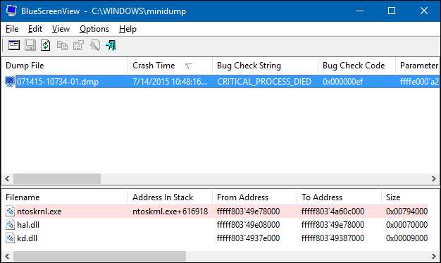 بلیو اسکرین کریش ڈمپ کی تفصیلات دیکھیں