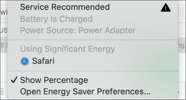 کسی بھی وقت، آپ اسکرین کے سب سے اوپر دائیں کونے میں آپ کی بیٹری آئکن پر بھی کلک کر سکتے ہیں کہ وہ اطلاقات کی ایک فہرست دیکھیں جو اہم توانائی استعمال کررہے ہیں.