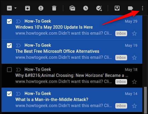 ایک بار جب آپ نے تمام ای میلز کو منتخب کیا ہے تو آپ منسلک کے طور پر بھیجنا چاہتے ہیں، "مزید" آئکن پر کلک کریں، جو تین عمودی نقطہ نظر کے طور پر ظاہر ہوتا ہے.