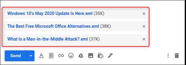 ای میل اب ای ایم ایل فائل کے طور پر منسلک کیا جائے گا. آپ اس ڈریگ اور ڈراپ کے طریقہ کار کو دوبارہ کرکے آپ کے جواب کی طرح بہت سے ای میلز منسلک کرسکتے ہیں.