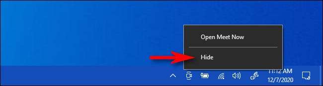 اب آئکن سے ملنے کے لئے فوری طور پر چھپانے کے لئے، اس پر دائیں کلک کریں اور سیاق و سباق مینو سے "چھپائیں" کو منتخب کریں جو پاپ اپ.