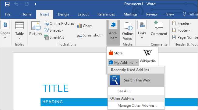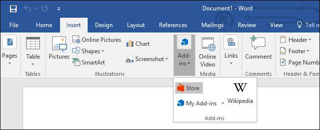 ایک بار آپ کے پاس ، آفس ایپلی کیشن کھولیں جس کے ساتھ آپ ایڈ کا استعمال کرنا چاہتے ہیں اور داخل کریں> شامل کریں> میری ایڈ انکس پر کلک کریں۔