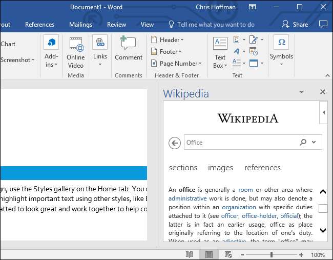 جبکہ ہم یہاں اسکرین شاٹ میں ونڈوز برائے ورڈ 2016 دکھا رہے ہیں ، یہ اختیار اسی طرح دوسرے آفس ایپلیکیشنز اور ورڈ میں دوسرے پلیٹ فارمز کے لئے دستیاب ہے ، جیسے ورڈ برائے رکن ، ورڈ فار میک ، اور ورڈ آن لائن۔