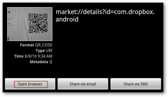 جب بار کوڈ اسکینر QR کوڈ کو پڑھنے اور اس کی شناخت ختم کردیں تو ، براؤزر کھولیں کو منتخب کریں۔