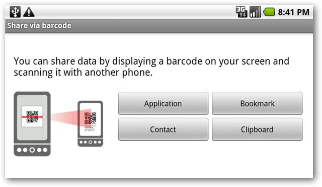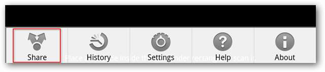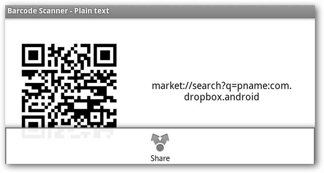 بار کوڈ اسکینر کو آپ کے فون میں ڈسپلے (یا اس کے برعکس) سے براہ راست کیو آر کوڈ کو اسکین کرکے دوسروں کو آپ کے کسی بھی انسٹال کردہ ایپس کو انسٹال کرنے کی اجازت دینے کے لئے استعمال کیا جاسکتا ہے۔ بار کوڈ اسکینر کھولیں اور اپنے Android فون پر مینو کے بٹن کو منتخب کریں۔ پھر بانٹیں منتخب کریں۔