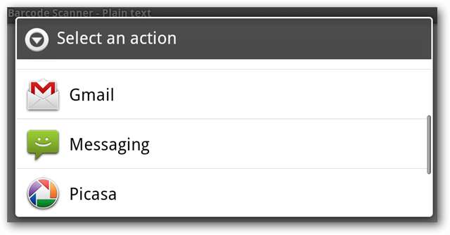 اگلا ، بار کوڈ اسکرین کے ذریعے اشتراک سے ایپلیکیشن منتخب کریں۔