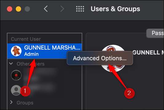 اگلا، بائیں ہاتھ کی پین میں "موجودہ صارف" گروپ میں اپنے اکاؤنٹ پر کلک کریں، اور پھر "اعلی درجے کے اختیارات" پر کلک کریں.