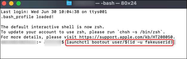ہاتھ میں صارف کی شناخت کے ساتھ، کھلا ٹرمینل (ایپ کو کھولنے کے لئے "ٹرمینل" تلاش کرنے کے لئے اسپاٹ لائٹ تلاش کا استعمال کریں). ٹرمینل میں، مندرجہ ذیل کمانڈ چلائیں (تبدیل کرنا