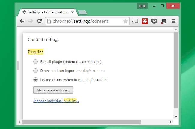 ایسا کرنے کے لئے ، کروم کا ترتیبات کا صفحہ کھولیں ، "اعلی درجے کی ترتیبات دکھائیں" ، "مواد کی ترتیبات" پر کلک کریں ، اور پلگ ان کے تحت "مجھے انتخاب کرنے دیں کہ پلگ ان کا مواد کب چلائیں" کا انتخاب کریں۔