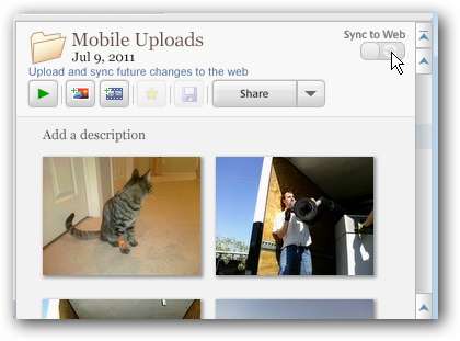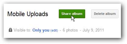 شیئر البم کا بٹن خود بخود آپ کے البم کو عوامی بنائے گا اور آپ کے سلسلہ میں اس کا ایک لنک شائع کرے گا۔