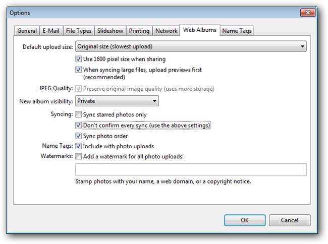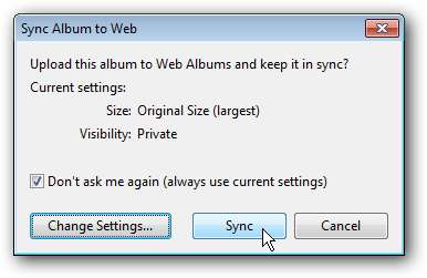 ایک پاپ اپ ونڈو کھل جائے گی اور آپ کو ویب البمز میں سائن ان کرنے کے لئے کہے گی۔ اپنے Google+ اکاؤنٹ کے ساتھ لاگ ان کریں اور دوسرا پاپ اپ آپ سے اپنے اپ لوڈ کی ترتیبات کی تصدیق کرنے کے لئے کہے گا۔ ترتیبات کو تبدیل کرنے پر کلک کریں اور اپنی پسند کی ترتیبات میں ترمیم کریں۔ اس بات کو یقینی بنائیں کہ "مذکورہ بالا ترتیبات استعمال کریں" کے ل you آپ باکس کو چیک کریں ورنہ ہر بار آپ سے پوچھا جائے گا۔