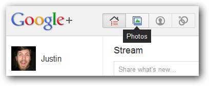 آپ کی تصاویر کے اپ لوڈ ہونے کے بعد ، Google+ میں لاگ ان کریں اور اوپر والے بینر میں فوٹو پر کلک کریں۔