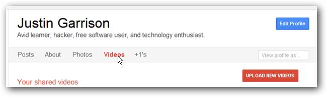 اپنے Google+ اکاؤنٹ میں لاگ ان کریں اور اپنے پروفائل -> ویڈیوز پر کلک کریں۔