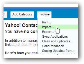 رسائی کی تصدیق کریں اور اپنے فیس بک اکاؤنٹ سے سائن ان کریں اور پھر جائیں ایڈریس.یاہو.کوم . ٹولز پر کلک کریں اور ڈراپ ڈاؤن سے درآمد کریں۔