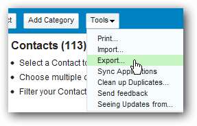 اگلا ، اپنے رابطوں کو ٹولز مینو کے ساتھ .csv فائل میں ایکسپورٹ کریں۔