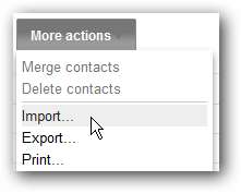 اب جی میل میں لاگ ان ہوں ، روابط پر کلک کریں -> مزید ایکشن -> امپورٹ کریں۔