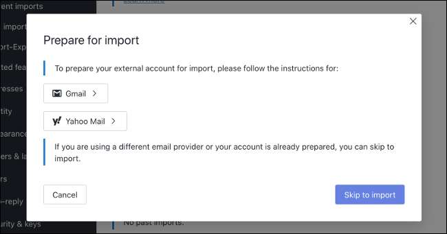 پروٹون میل V4 (مفت) میں درآمد اسسٹنٹ کا استعمال کریں