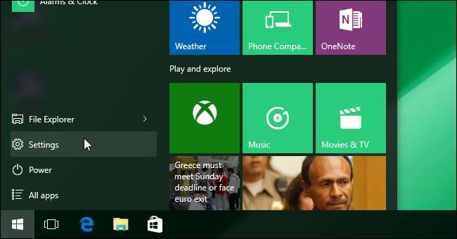 آپ کے انسٹال کردہ پروگراموں کے ساتھ اسٹارٹ مینو کے دائیں جانب ٹائلوں کے نیچے سیٹنگ کو شامل کیا جاتا ہے۔