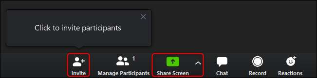 جب میٹنگ کھلی ہے تو ، "دعوت" پر کلک کریں جس میں بھی آپ شامل ہونا چاہتے ہیں اسے دعوت نامے بھیجیں۔ ہر ایک کے زوم میٹنگ میں ہونے کے بعد ، "سکرین کا اشتراک کریں" پر کلک کریں۔