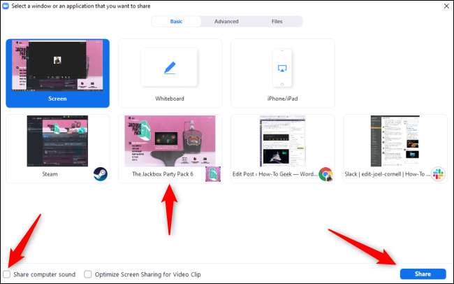 زوم (یا کسی بھی دوسرے اسکرین کا اشتراک کرنے والی ایپ) کی مدد سے آپ اسکرین کو اسٹریم کرسکتے ہیں تاکہ ہر کوئی اسے دیکھ سکے اور آن لائن جیک باکس گیمز کھیل سکے۔