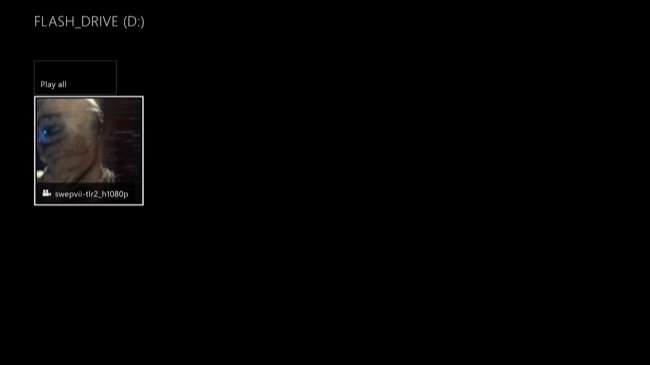 میڈیا پلیئر ایپ کھولیں اور آپ اپنی مربوط ڈرائیو کو بطور آپشن دیکھیں گے۔ ڈرائیو کو منتخب کریں اور آپ اس میں موجود تمام میڈیا فائلوں کو براؤز کرسکتے ہیں اور اپنے ایکس بکس کنٹرولر کے ذریعہ پلے بیک کو کنٹرول کرتے ہوئے ان کو چلا سکتے ہیں۔