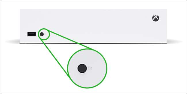 ایک اصل ایکس بکس ایک پر، آپ نظری ڈسک ڈرائیو کے قریب کنسول کے بائیں پر جوڑا بنانے کا بٹن تلاش کر لیں گے.