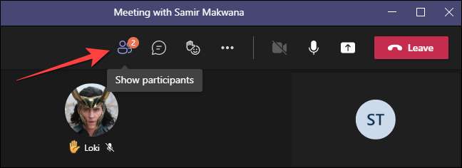 مائیکروسافٹ ٹیمیں ڈیسک ٹاپ میں ایک ویڈیو کال کے دوران، سب سے اوپر "شرکاء" کے بٹن کو منتخب کریں.