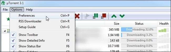 یوٹورینٹ چلائیں ، ترجیحات پر نیویگیٹ کریں (یا سی ٹی آر ایل + پی کو دبائیں) جیسا کہ اوپر اسکرین شاٹ میں دیکھا گیا ہے۔ ایک بار جب آپ ترجیحات کے مینو میں ہوں تو ریموٹ پر جائیں۔