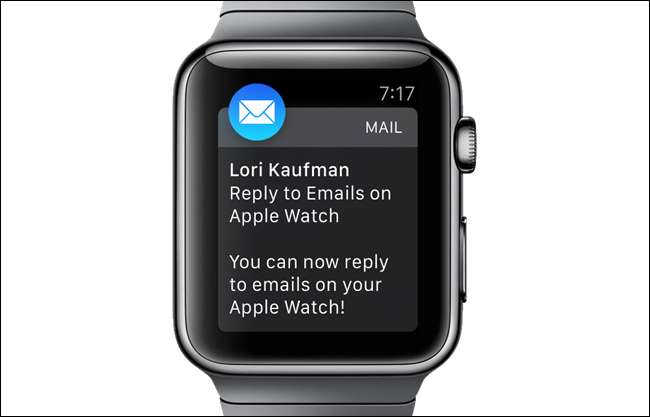واچ او ایس 2 تک ، "میل" ایپ صرف آنے والی ای میلز کے لئے اطلاعات دکھاسکتی تھی اور ڈسپلے کرسکتی تھی۔ اب ، آپ ایپل واچ کا استعمال کرتے ہوئے میل میں ای میل پیغامات کا جواب اسی طرح دے سکتے ہیں جس طرح آپ اپنی گھڑی پر ٹیکسٹ پیغامات کا جواب دے سکتے ہیں۔