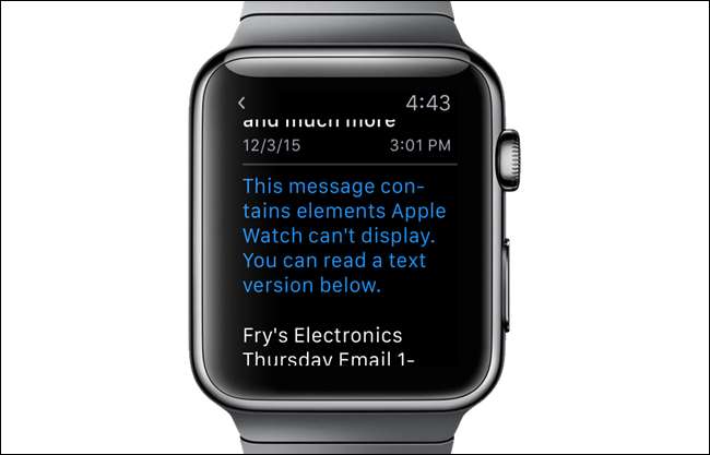 نوٹ: اگر آپ میں ایپل واچ مکمل مواد ڈسپلے نہیں کرسکتی ہے اگر پیغام میں رچ ٹیکسٹ اور دیگر پیچیدہ میڈیا استعمال ہوتا تھا۔ یہ صرف متن دکھائے گا۔ مکمل مواد دیکھنے کے لئے اپنے فون پر ای میل پیغام پڑھیں۔