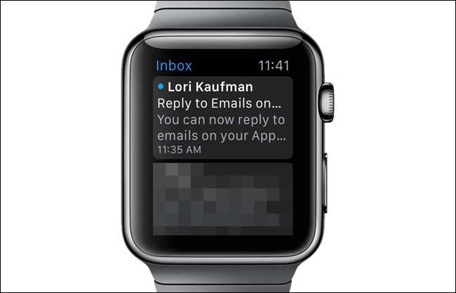 جب آپ کو اپنی گھڑی پر اطلاع مل جائے کہ آپ کو ای میل موصول ہوا (جیسا کہ اوپر کی تصویر ہے) ، پیغام کھولنے کے لئے نوٹیفکیشن پر ٹیپ کریں۔