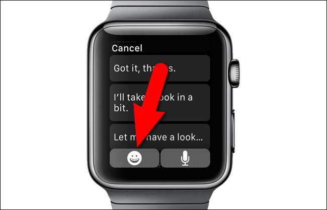 آپ کسی ای میل کے جواب کے طور پر ایموجی بھیجنے کا بھی انتخاب کرسکتے ہیں۔ ایک بار جب آپ نے ای میل کھول دی ہے جس پر آپ اپنی گھڑی پر جواب دینا چاہتے ہیں اور "جواب" بٹن کو ٹیپ کریں ، اسکرین کے نیچے ایموجی بٹن کو ٹیپ کریں۔