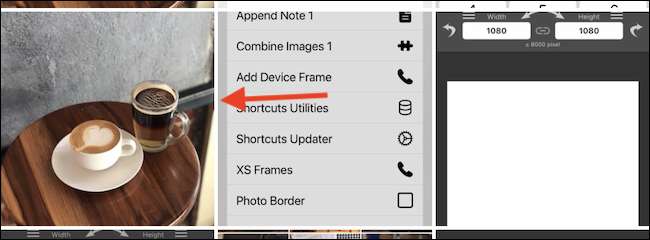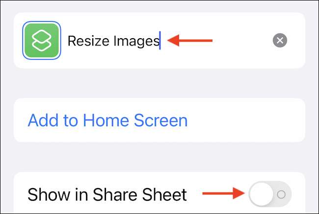 نیچے سکرال کریں اور شارٹ کٹ منتخب کریں جو ہم نے صرف تخلیق کیا (ہماری مثال میں، اسے "تصاویر کا سائز تبدیل کریں" کہا جاتا ہے، لیکن آپ کو اس سے اوپر شارٹ کٹس اے پی پی میں کچھ مختلف نامزد کیا جا سکتا ہے).