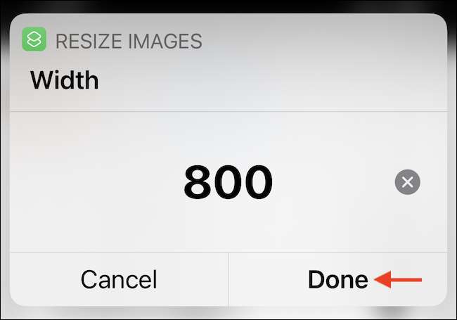پاپ اپ میں، "شارٹ کٹ ان پٹ" کا اختیار منتخب کریں. اس کا مطلب یہ ہے کہ شارٹ کٹ کسی بھی تصویر کا سائز تبدیل کرے گا جسے آپ اسے بھیجتے ہیں (یہ استعمال کرتے ہوئے ایک سے زیادہ تصاویر بھیجنے کے لئے مفید ہے اشتراک مینو تصاویر اپلی کیشن میں.).