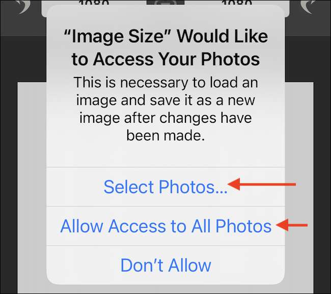 اے پی پی آپ کی تصویر لائبریری تک رسائی کے لئے آپ سے پوچھتا ہے. آپ اپنی پوری تصویر لائبریری تک اپلی کیشن تک رسائی دے سکتے ہیں، یا آپ صرف چند تصاویر منتخب کرسکتے ہیں.