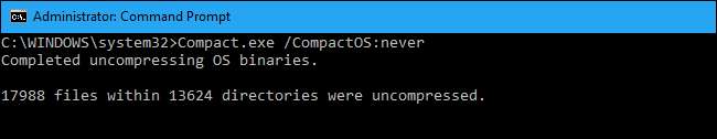 اس نے کہا ، ونڈوز 10 آپ کو کمپیکٹ او ایس کو دستی طور پر فعال یا غیر فعال کرنے دیتا ہے۔ شاید آپ کے پاس 64 جی بی کمپیوٹر ہے اور آپ کو اشد ضرورت کے لئے کچھ مزید گیگا بائٹس کی ضرورت ہے ، یا شاید آپ کم اسٹوریج والے کمپیوٹر پر کمپیکٹ او ایس کی کارکردگی کا جرمانہ نہیں چاہتے ہیں۔ اب آپ کے پاس ونڈوز کو انسٹال کیے بغیر اسے غیر فعال یا غیر فعال کرنے کا انتخاب ہے۔
