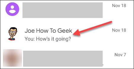 آپ کے تمام پچھلے بات چیت اب پیغامات میں دکھائے جائیں گے. بات چیت کا انتخاب کریں جہاں آپ ایک پیغام شیڈول کرنا چاہتے ہیں.