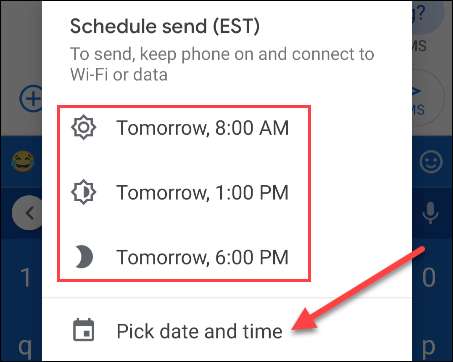یہ شیڈولنگ کے اختیارات کھولے گا. ٹائم زون سب سے اوپر دکھایا گیا ہے لہذا جب پیغام بھیجا جائے تو اس کے بارے میں کوئی الجھن نہیں ہے. آپ پہلے سے مقرر کردہ اوقات یا "منتخب کردہ تاریخ اور وقت سے منتخب کرسکتے ہیں."
