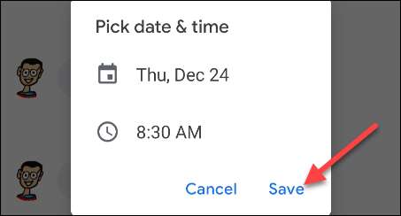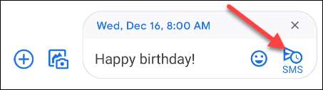آخر میں، شیڈول کردہ تاریخ اور وقت آپ کے پیغام کے اوپر دکھائے جائیں گے. پیغام شیڈول کرنے کے لئے بھیجیں آئکن کو ٹیپ کریں.