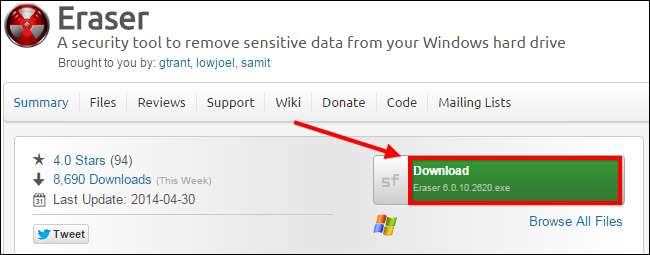 اس مثال کے مقاصد کے ل we ، ہم اراسر کی تازہ ترین مستحکم تعمیر کو ان سے ڈاؤن لوڈ کریں گے سرکاری سورسفورج پیج ، لیکن ہوشیار رہیں کیوں کہ SourceForge حال ہی میں ان کے انسٹالرز میں کریپ ویئر بنڈل رہا ہے۔