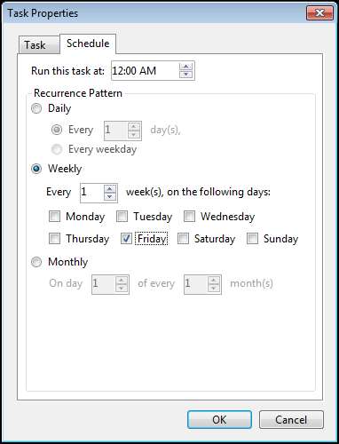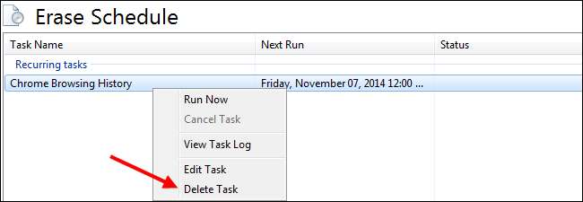 بس تبدیلیوں کو نافذ کریں اور آپ اپنے کام کو شیڈول میں ایک بار بار چلنے والے کام کے طور پر دیکھیں گے جو ہفتہ وار انجام پائے گا۔ اگر آپ کبھی بھی کسی کام کو ختم کرنا چاہتے ہیں تو ، صرف مٹانے کے نظام الاوقات پر جائیں ، ٹاسک پر دائیں کلک کریں اور "ڈیلیٹ ٹاسک" آپشن کو منتخب کریں۔