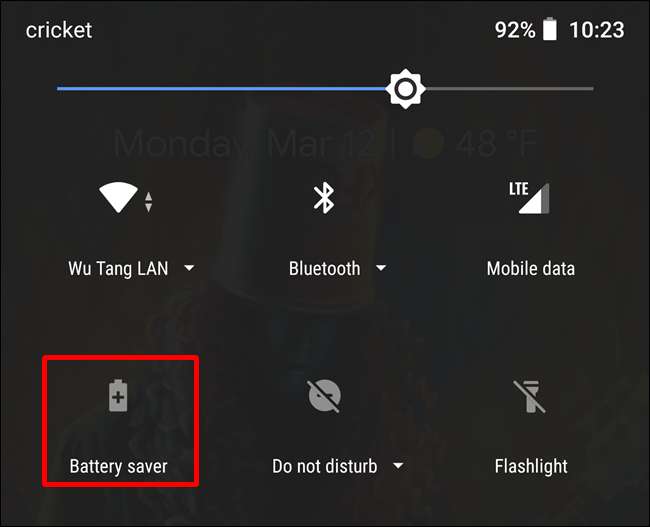 آپ نوٹیفیکیشن سایہ میں کوئک سیٹنگس پینل کو نیچے بھی کھینچ سکتے ہیں اور براہ راست اس اسکرین پر جانے کے لئے بیٹری آئیکن (یا بیریو سیور پر اوریورو ڈیوائس) پر دبائیں۔